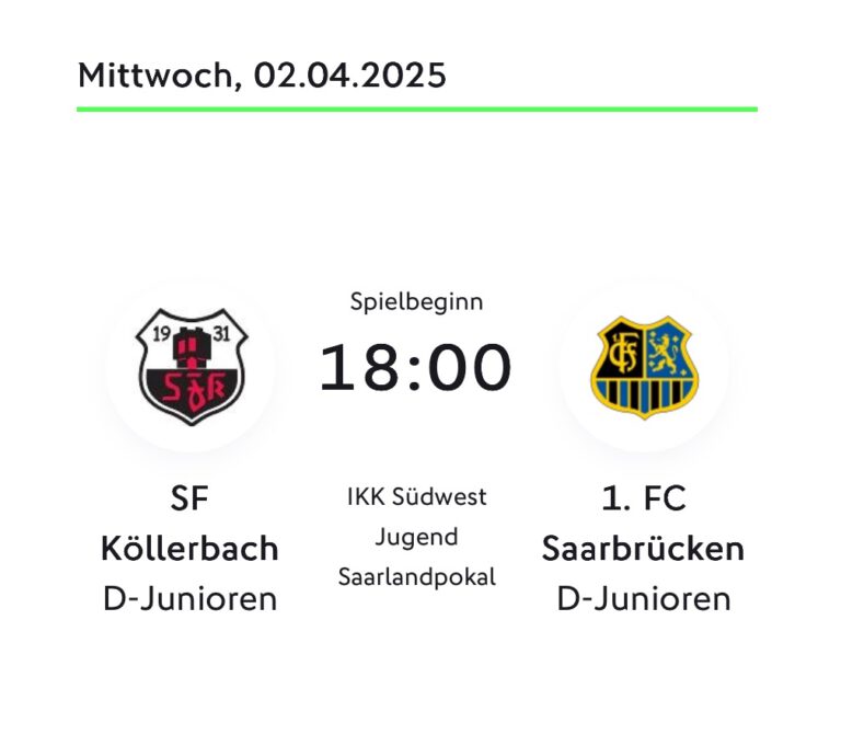 Donnerstag, 11. September 2025 E-Jugend SF Köllerbach 1 – SV Röchling Völklingen 1. Anstoß: 17:30 Uhr Samstag,...